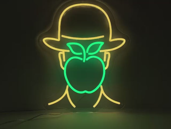 Il mistero del surrealismo belga diventa luce. Un omaggio iconico a René Magritte e alla sua celebre bombetta, perfetto per trasformare ogni parete in una galleria d’arte privata dal mood anni '50.